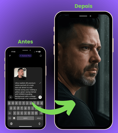 Evite frases genéricas. Um bom prompt descreve exatamente o que você quer: expressão, iluminação, estilo, plano de fundo, tipo de lente, resolução, ângulo, etc. Quanto mais específico, mais realista será o resultado.